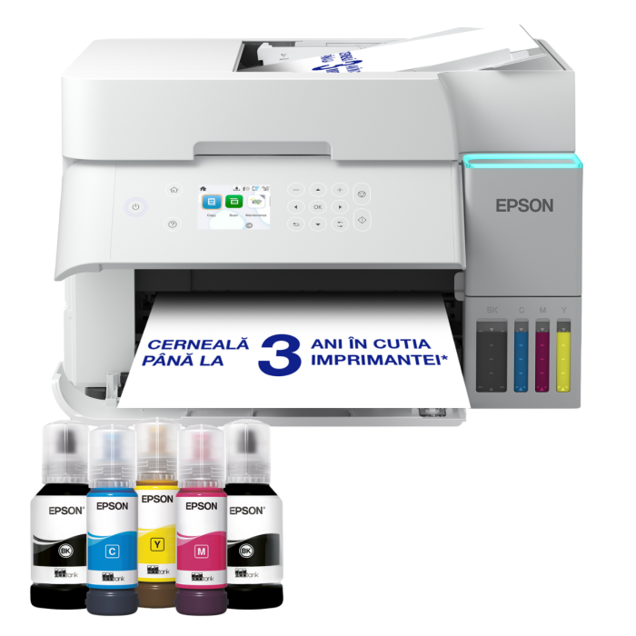 Continut Pachet: 1 set de cerneluri (1 x 127 ml BK, 3 x 70 ml CMY) + Negru suplimentar, Drivere şi programe utile (CD), Aparat principal, Cablu alimentare, Certificat de garanţie